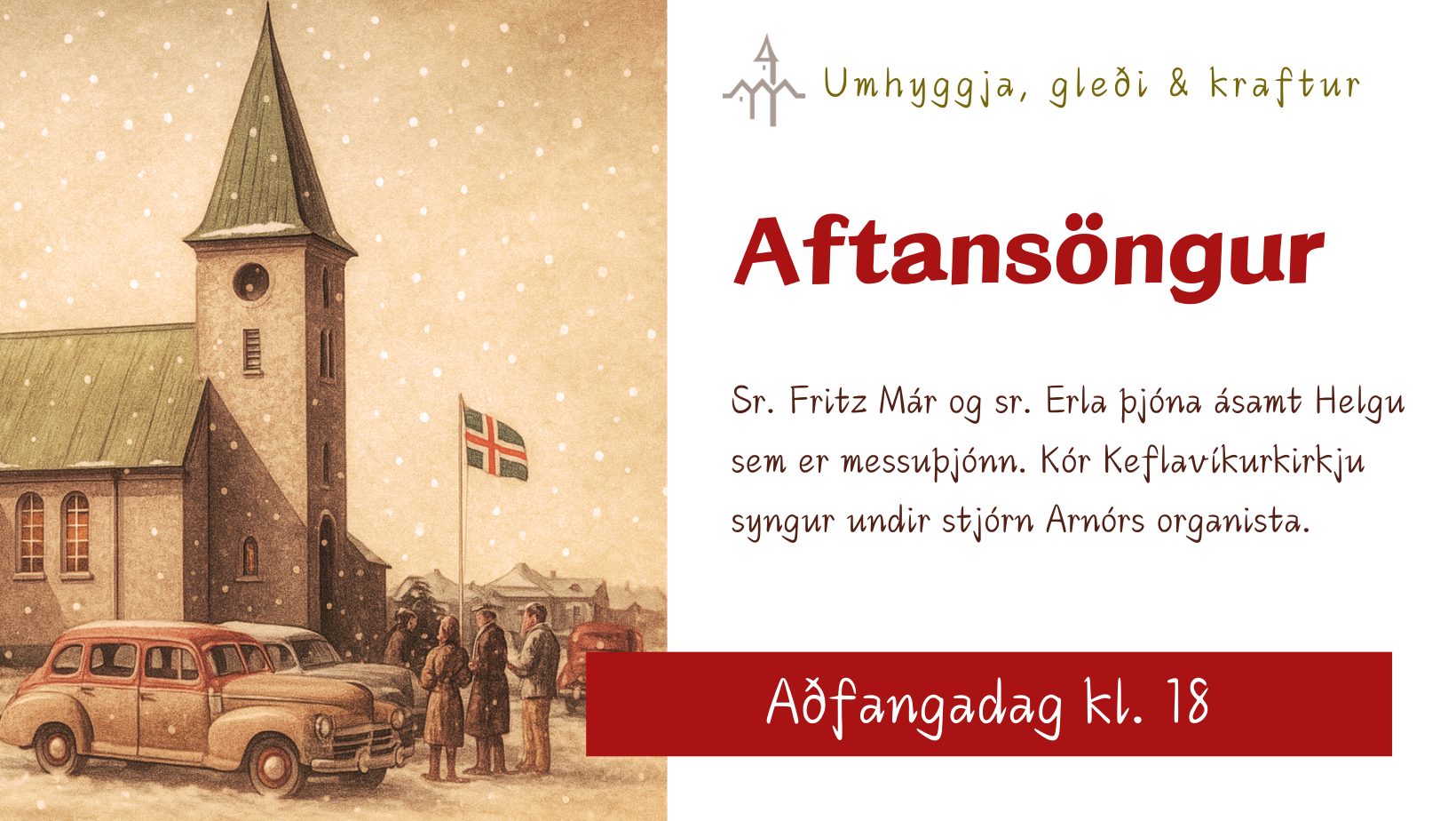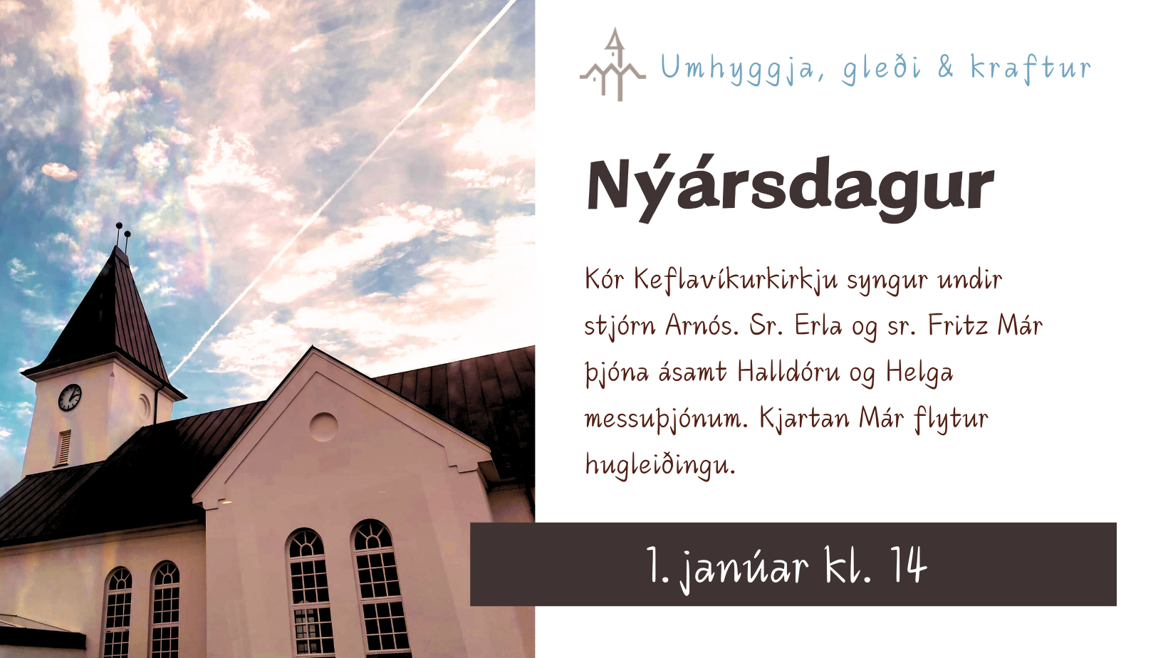 Verið velkomin í hátíðarmessu á nýársdag kl. 14. Kjartan Már bæjarstjóri Reykjanesbæjar flytur hugvekju. Kór Keflavíkurkirkju syngur undir stjórn Arnórs [...]