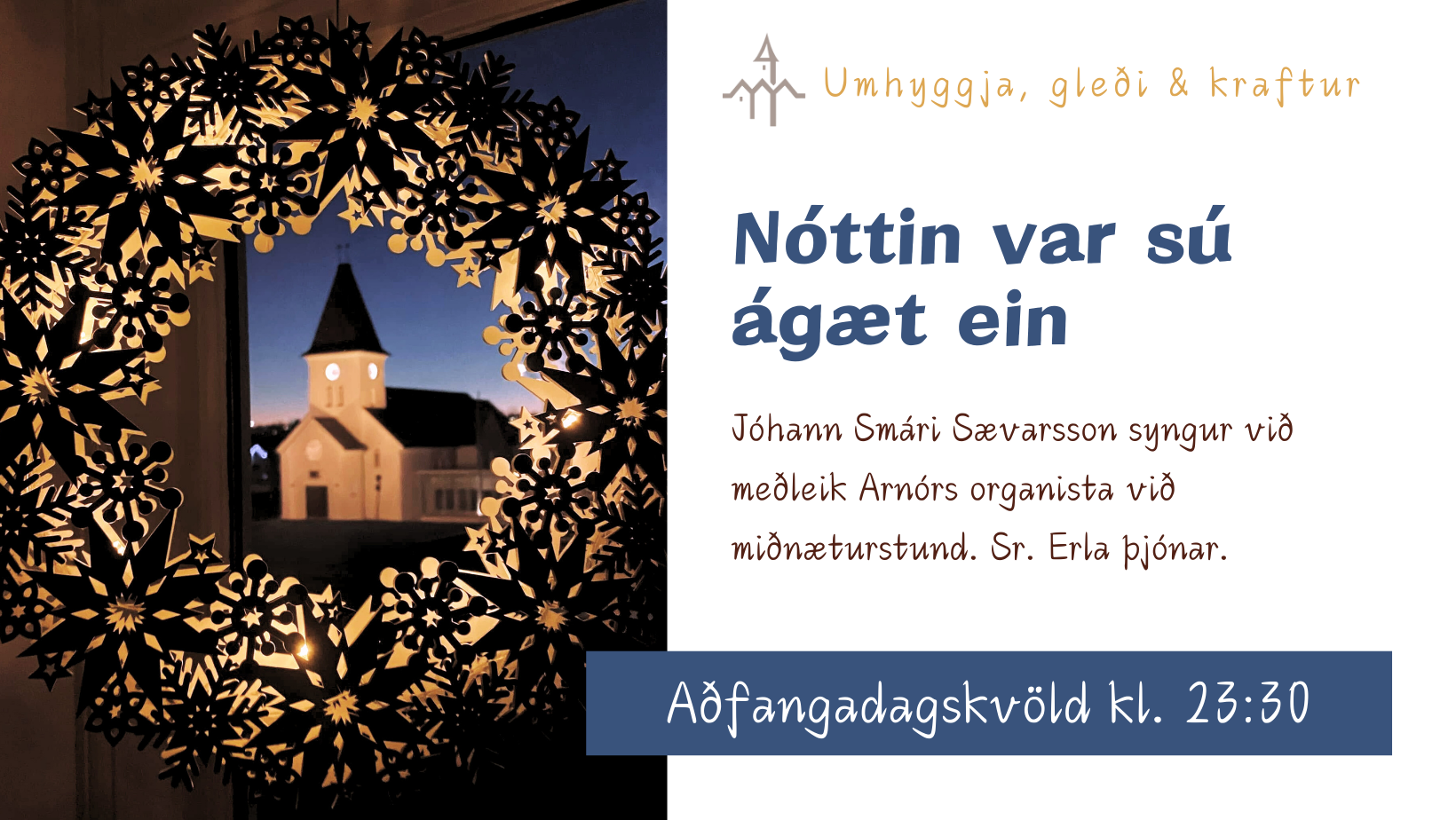 Verið velkomin í nærandi og fallega kvöldmessu sunnudagskvöld 11. janúar kl. 20. Sr. Erla þjónar ásamt Halldóru og Helga messuþjónum. [...]