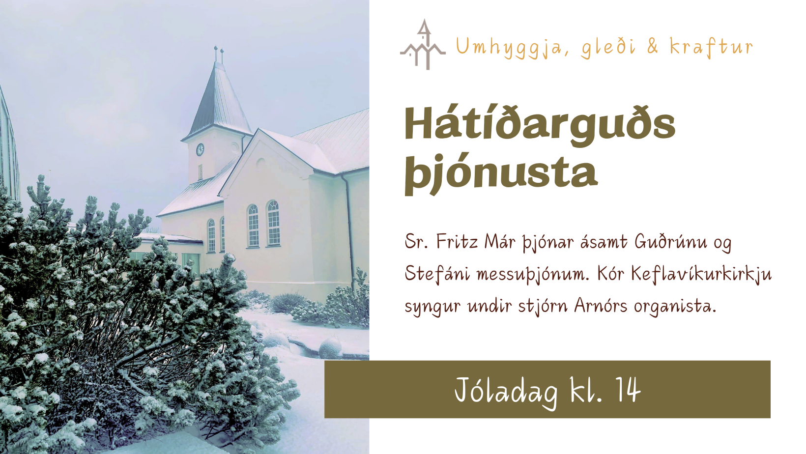 Verið velkomin í hátíðarmessu á jóladag kl. 14. Kór Keflavíkurkirkju syngur undir stjórn Arnórs organista. Sr. Fritz Már þjónar [...]