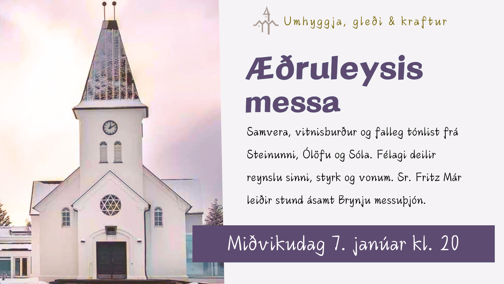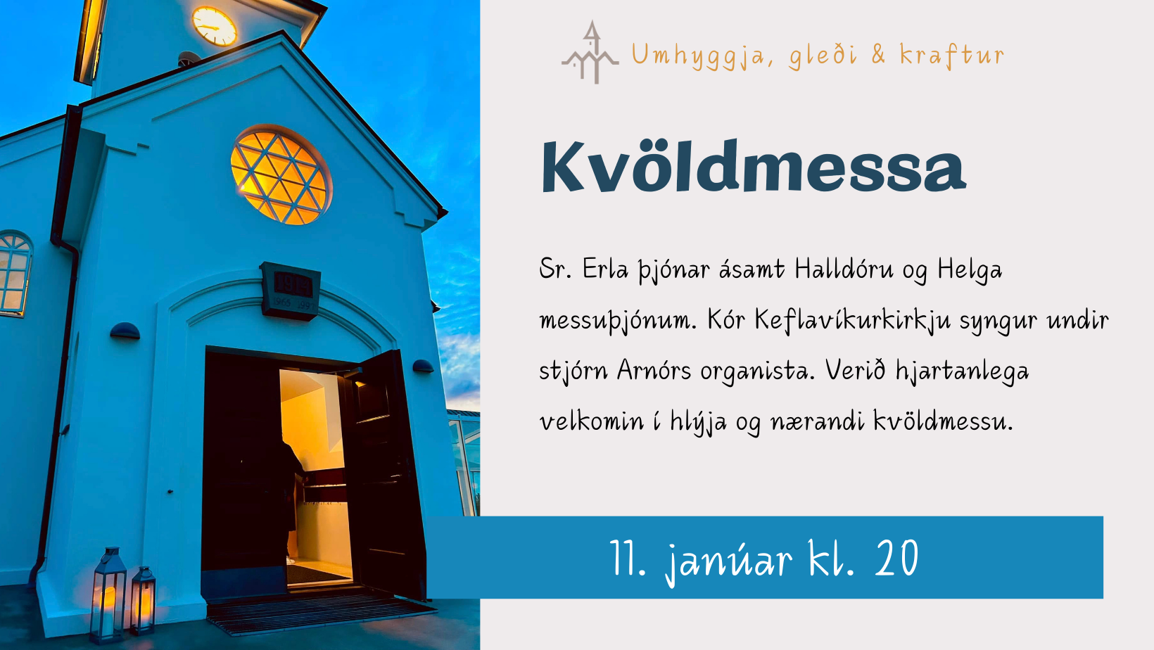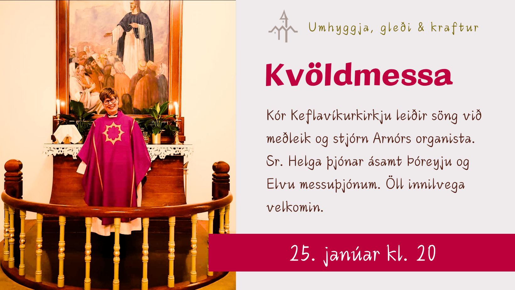 Verið velkomin í kvöldmessu 25. janúar kl. 20. Sr. Helga Kolbeinsdóttir þjónar ásamt Þóreyju og Elvu messuþjónum. Kórinn okkar leiðir [...]